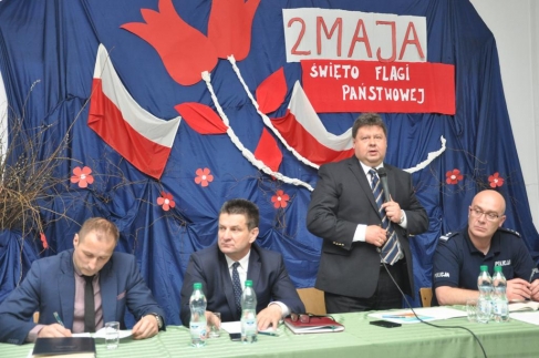 Z mieszkańcami naszego powiatu spotkali się: Wicewojewoda Mazowiecki Dariusz Piątek, Zastępca Mazowieckiego Komendanta Wojewódzkiego Policji mł. insp. Kamil Borkowski, Starosta Szydłowiecki Włodzimierz Górlicki, Burmistrz Szydłowca Artur Ludew, Komendant Powiatowy Policji w Szydłowcu podinsp. Jarosław Popczyński oraz Komendant Powiatowy Państwowej Straży Pożarnej w Szydłowcu mł. bryg. Krzysztof Banaszek.