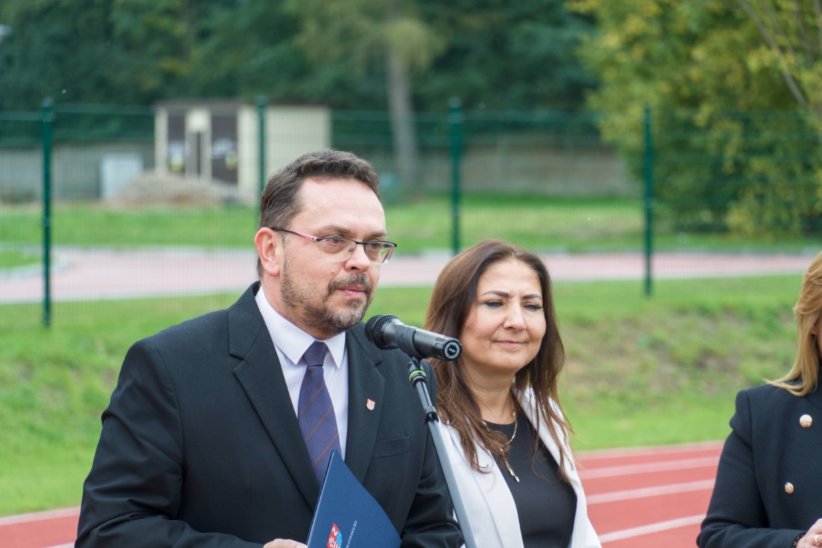 Wydarzenie zgromadziło licznych gości – przedstawicieli samorządowych, dyrekcje szkół, nauczycieli, uczniów oraz mieszkańców powiatu. Uroczystość miała wyjątkowo sportowy charakter – poprzedziły ją i towarzyszyły jej sztafetowe biegi uczniów szkół podstawowych i ponadpodstawowych.