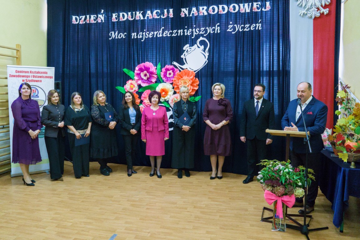16 października w CKZiU w Szydłowcu odbyła się uroczysta Akademia z okazji Dnia Edukacji Narodowej. Dyrektor Sławomir Drabik przywitał licznie przybyłych gości, w tym Starostę Szydłowieckiego Roberta Górlickiego, Wicestarostę Anitę Gołosz, Przewodniczącą Rady Miejskiej Szydłowiec Jadwigę Kopycką, Naczelnik Wydziału Edukacji, Zdrowia, Kultury i Sportu Marzenę Janowską oraz dyrektorów pozostałych placówek oświatowych powiatu.