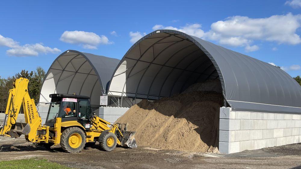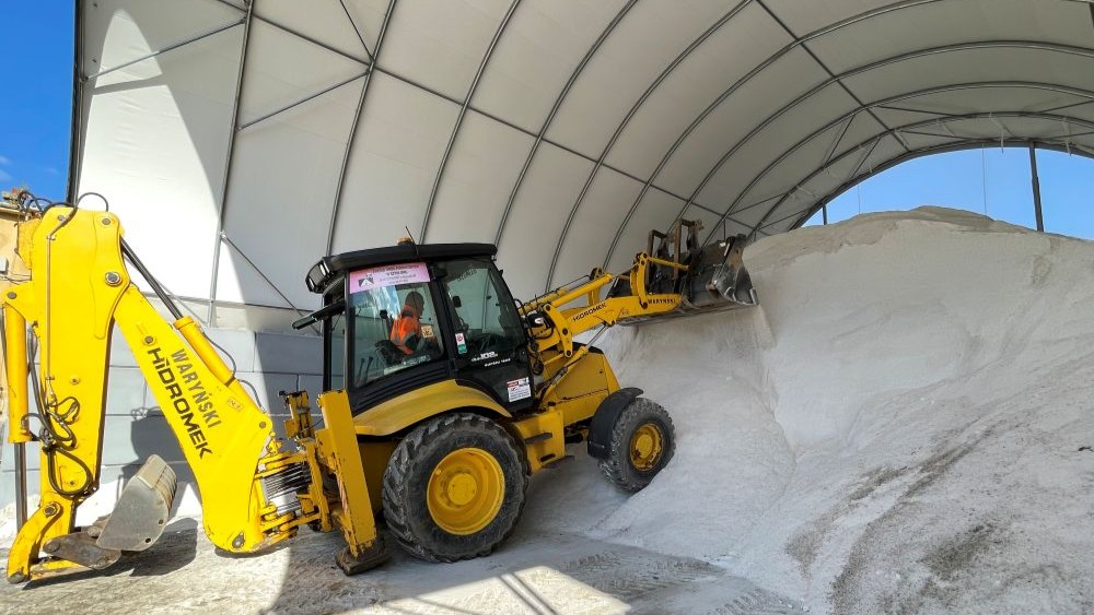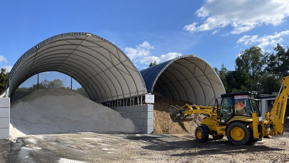 - Etap budowa magazynu soli - wybudowanie przemysłowej hali tunelowej przeznaczonej do przechowywania materiałów sypkich, wraz z utwardzeniem terenu na placu ZDP przy ul. Kolejowej 78. Powierzchnia hali to około 250 m2, mieści 400 ton soli i około 500 ton mieszanki.