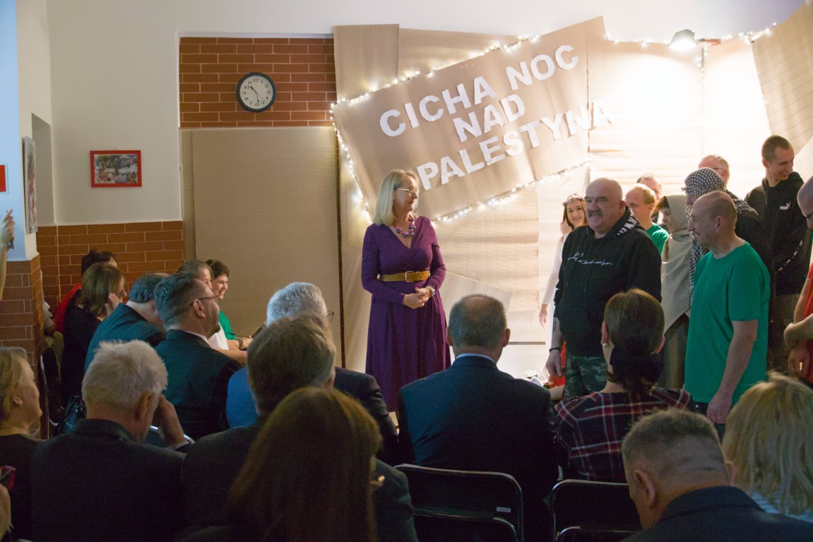 Program spotkania obejmował krótki, poruszający występ artystyczny podopiecznych, nawiązujący do wartości pokoju, szacunku i solidarności w kontekście trwającego konfliktu w Palestynie. Symboliczne odniesienie do współczesnych wydarzeń nadało montażowi słowno-muzycznemu szczególny, refleksyjny charakter i skłaniało do zadumy nad znaczeniem pojednania oraz wzajemnego zrozumienia.