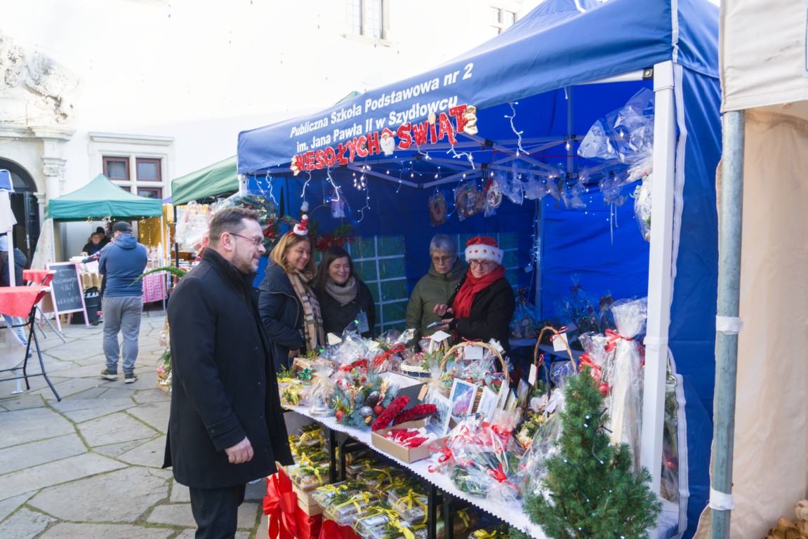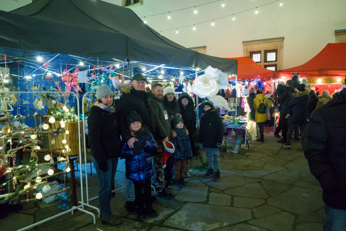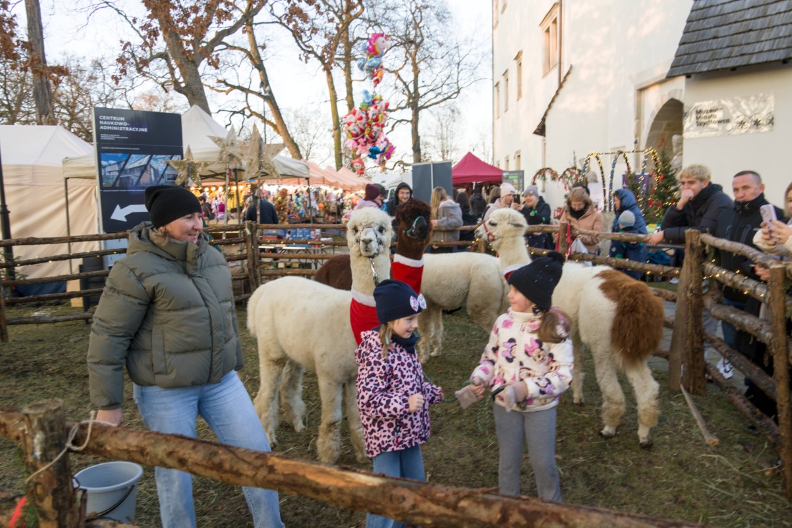 Na najmłodszych czekały liczne atrakcje, w tym świąteczna karuzela, spotkania z alpakami oraz animacje, które przyciągały rodziny z całego powiatu. O świąteczną oprawę muzyczną zadbali m.in. lokalni artyści, chór i orkiestra dęta, tworząc na zamkowym dziedzińcu niepowtarzalny klimat zbliżających się Świąt Bożego Narodzenia.
