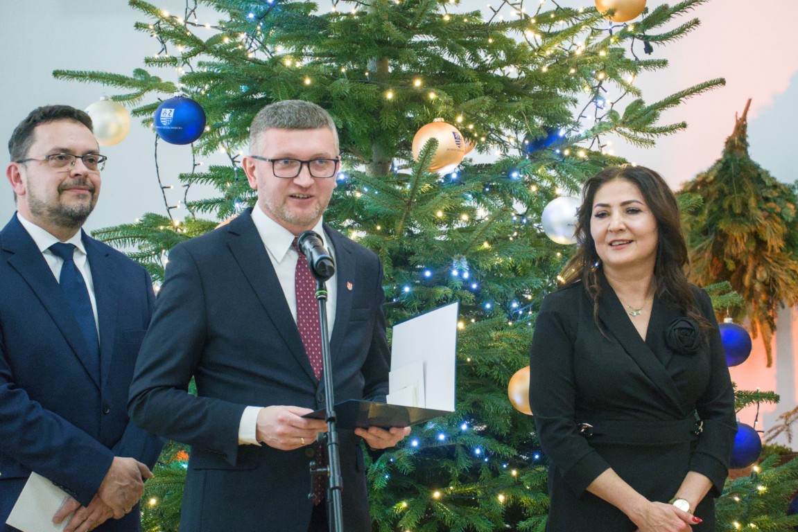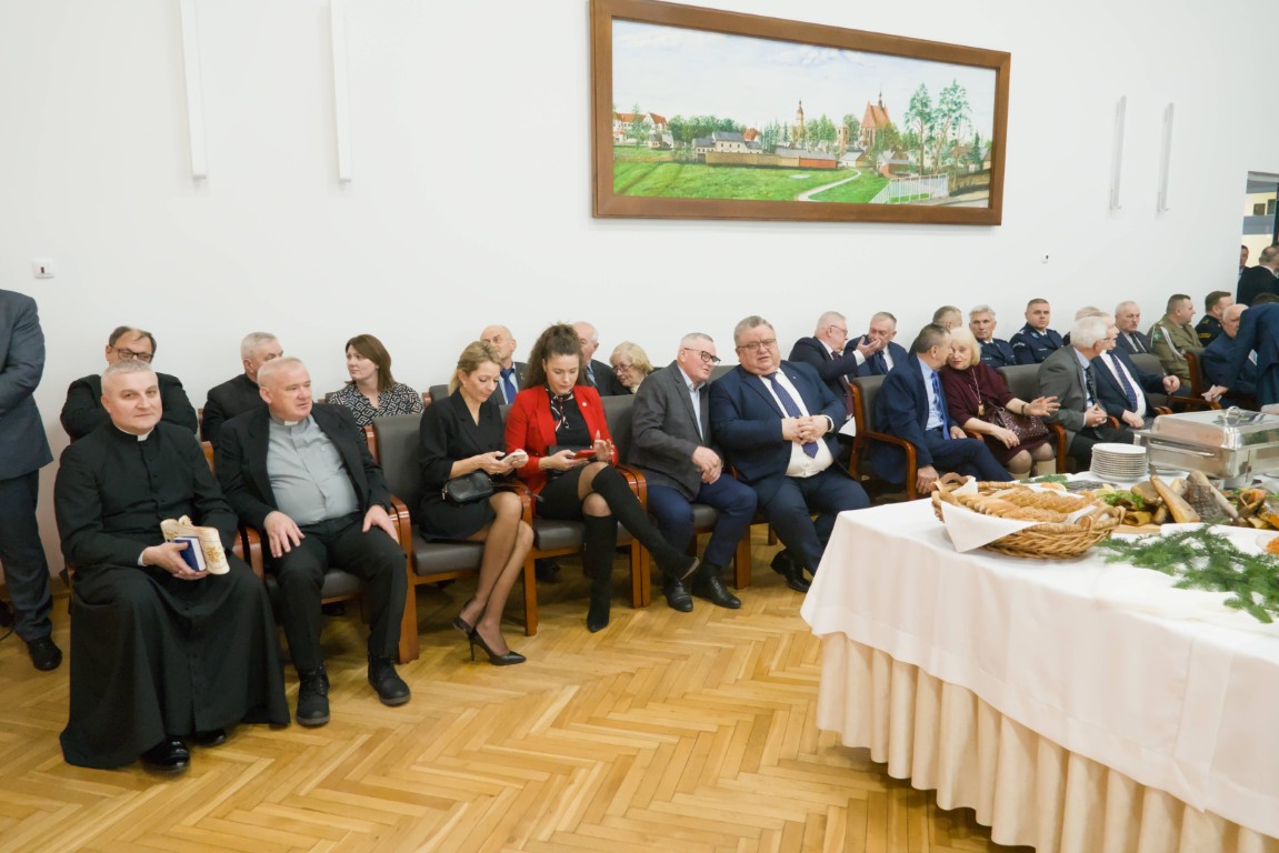 Podczas uroczystości gospodarze powiatu – w tym Starosta, Wicestarosta oraz Przewodniczący Rady Powiatu – skierowali do zebranych słowa podziękowania za całoroczną współpracę i zaangażowanie na rzecz mieszkańców, składając jednocześnie świąteczne i noworoczne życzenia. Podkreślono znaczenie wspólnoty samorządowej, dialogu między instytucjami i organizacjami społecznymi oraz współodpowiedzialności za rozwój powiatu.