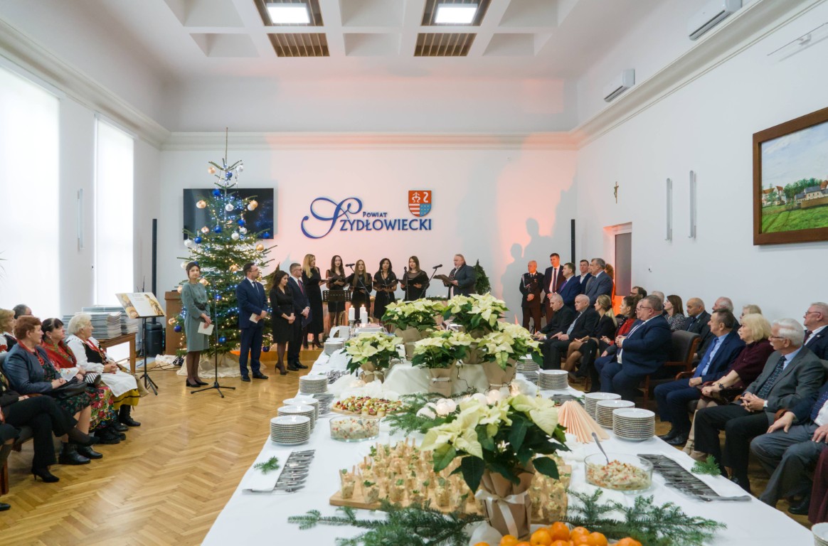 W sali konferencyjnej Starostwa Powiatowego w Szydłowcu odbyło się doroczne spotkanie wigilijne Powiatu Szydłowieckiego, nawiązujące do tradycji opłatkowych spotkań organizowanych w poprzednich latach. Uczestniczyli w nim przedstawiciele gmin z terenu powiatu, kierownictwa służb i inspekcji, dyrektorzy jednostek organizacyjnych, reprezentanci organizacji pozarządowych, Kół Gospodyń Wiejskich, duchowieństwa oraz pracownicy Starostwa.