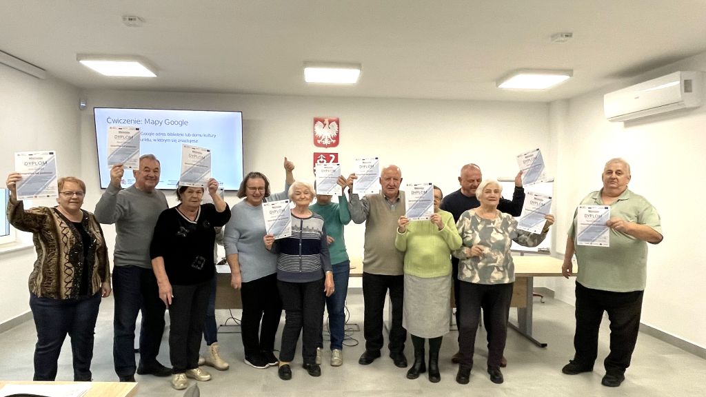 Uczestnicy szkolenia za aktywność i zaangażowanie w zajęciach otrzymali zaświadczenia potwierdzające zdobycie nowych kompetencji cyfrowych oraz mają możliwość skorzystania z indywidualnych konsultacji z doradcą w wybranej dziedzinie.