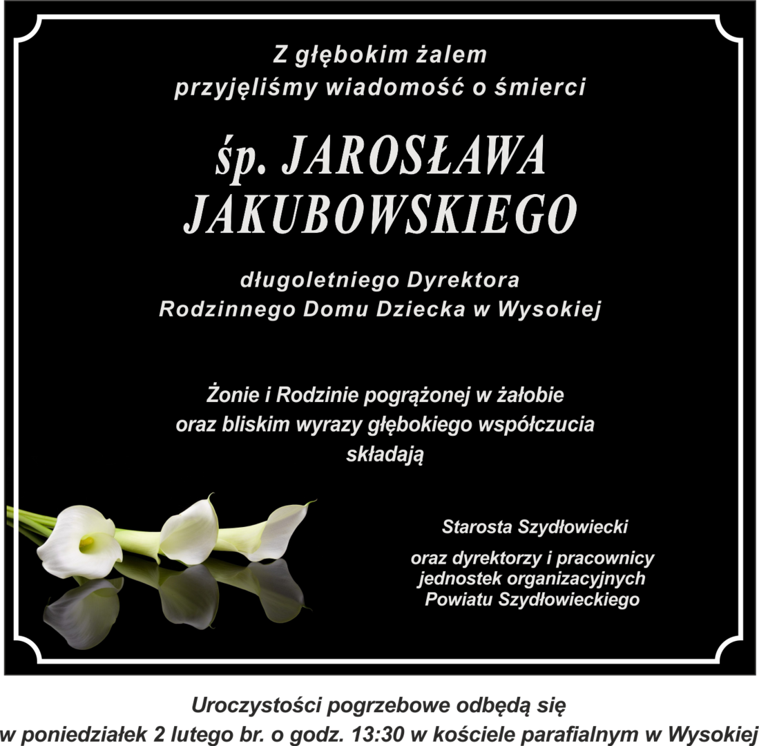 Z głębokim żalem przyjęliśmy wiadomość o śmierci śp. JAROSŁAWA JAKUBOWSKIEGO